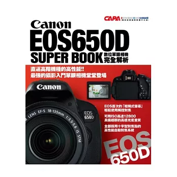 本書從EOS650D的各種機能開始介紹,舉凡新增的全十字點對焦系統、5張/秒連拍、最高可達25,600的超高ISO感光度等,到各種活用的技巧,都一一的為讀者介紹,讓讀者可以快速上手,並且瞭解650D的使用方法,讓您可以馬上快速的使用650D來拍攝您想要拍的相片。