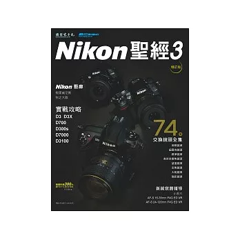 增訂版收錄了中階之王D7000和入門首選D3100的實戰攻略,以及小黑六、小三元(AF-S 16-35VR和24-120VR)等在內的74支交換鏡頭全集。Nikon粉絲一定要收藏的好書!