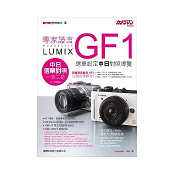 滿懷喜悅的把 GF1 買回家, 利用自動模式也確實能輕鬆拍好的照片, 但你不會光用自動模式一路拍到底吧!這樣就太浪費 GF1 優異的性能囉!GF1 豐富的模式、設定, 還有可更換鏡頭的擴展性, 足以勝認各種環境、對象。就讓本書帶你深入 GF1 的內涵, 讓你握在手中的 GF1 拍出更多亮眼的照片。本書內容包含: